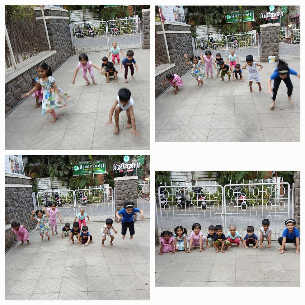 Today our little champs enjoyed fun animal walks like rabbit hops 🐰, lion walks 🦁, and frog jumps 🐸. This activity helped improve their balance, coordination, and strength💪 while having lots of fun! 😄✨