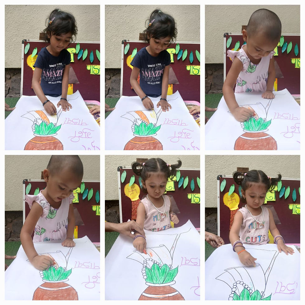 The children enjoyed a fun colouring activity 🖍️🎨 where they beautifully coloured the Gudi, learning about our rich culture and traditions. 🌿🏵️